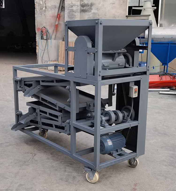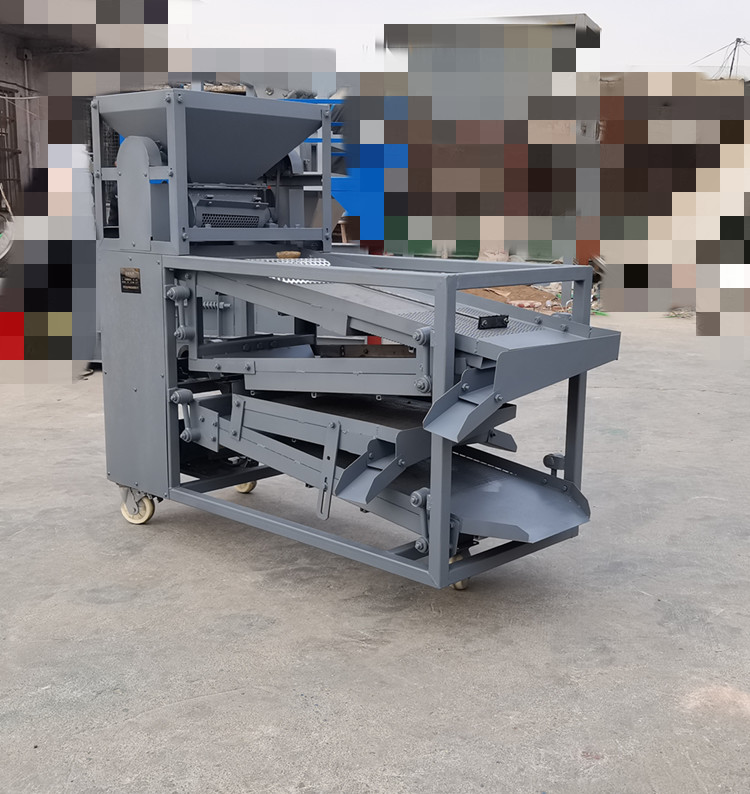 原枝花椒投進料斗后--------粉碎裝置將原枝花椒進行粉碎,將枝葉殼籽分別剝離下來--------通過下料器一起落到篩面上進行分離篩分---------一層將篩出來的是大枝干、梅花椒、石子,復試篩網篩出來的是花椒枝--------二層篩出來的是花椒籽,椒籽出來的地方有風機,將里面輕的雜質篩選出來-------三層是為篩分椒枝設計,整層篩出來都是花椒枝------底層篩出來的是花椒殼,復試篩網是塵土雜質等。